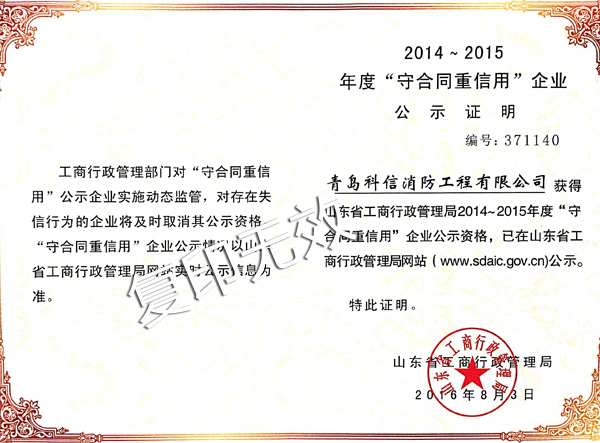 2014-2015年度“守合同重信用”企業(yè)
